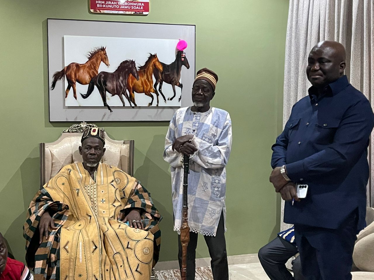 The Minister for Food and Agriculture, Eric Opoku, has paid a courtesy visit to His Royal Majesty Jirah Yagbonwura Bii-Kunuto Jawu Soale I, Overlord of the Gonja Kingdom, as part of activities marking the official launch of the PROSPER Project in Damongo, the Savannah Regional capital.