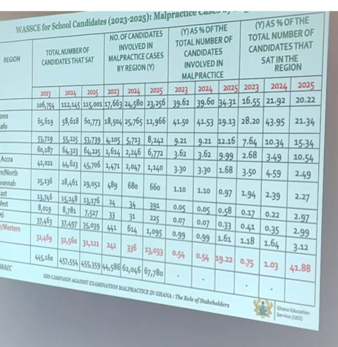 A troubling report released by the Ghana Education Service has revealed that the Western and Western North Regions recorded the highest rates of examination malpractice in the 2025 Basic Education Certificate Examination (BECE).