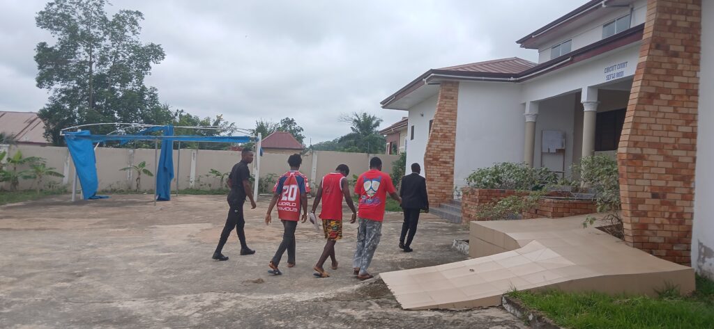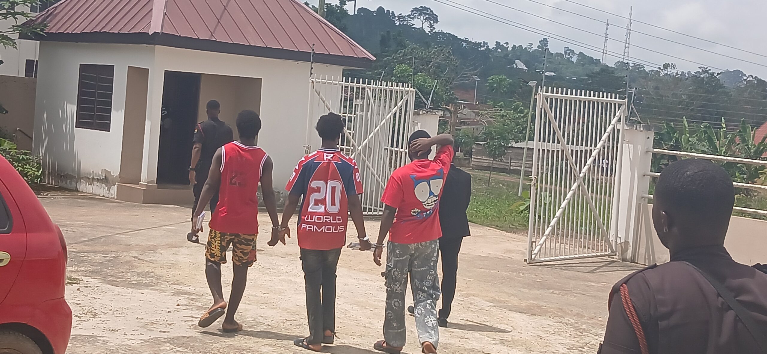 The three accused persons — Francis Enning, 26; Gideon Tano, 21; and Anthony Ahwoi, 22 — were arrested about three months ago following a reported attack at a mining site in the area, as earlier reported by legendreport.