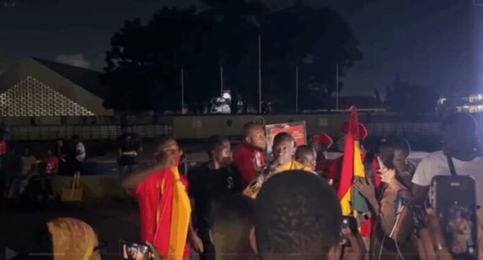 Accra, Ghana – Supporters of the FixTheCountry Movement gathered at Revolution Square in Accra on Sunday evening to hold a vigil in anticipation of their planned protest march against illegal mining, commonly referred to as galamsey.