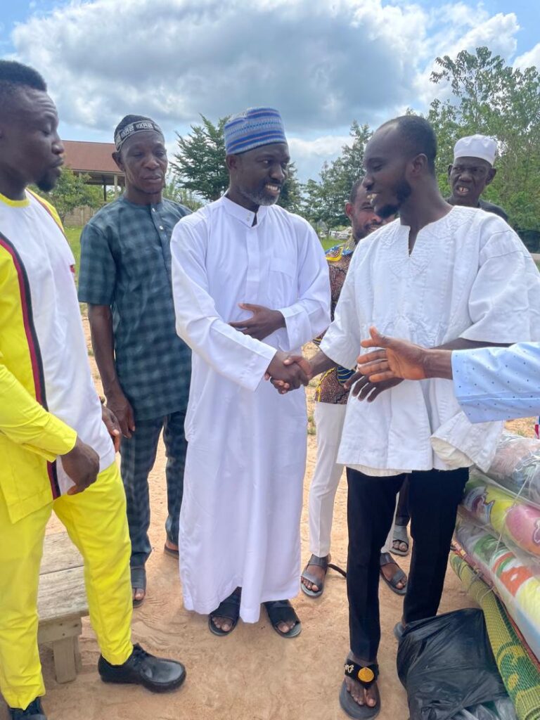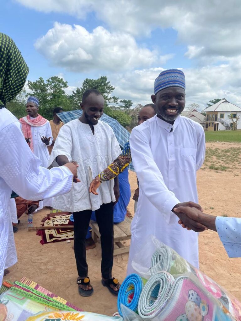 As part of his “Give Back to Society Initiative,” Dr. Ahenkorah made a generous donation to support the community. The items presented included eight bags of rice, ten prayer mats, ten lotas (buta), and a cash amount of GH₵1,000. This thoughtful gesture was aimed at easing the celebration and bringing comfort to many as they concluded this significant spiritual journey.