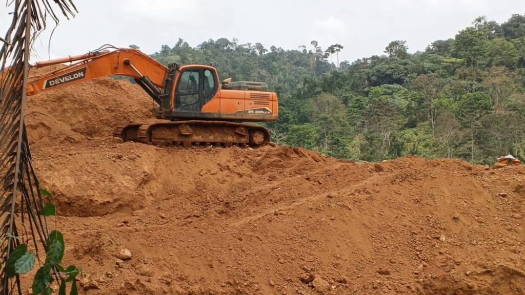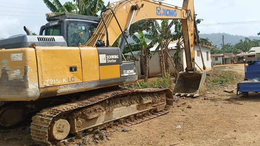 Later in the day, around 1:00 p.m., the team moved to Dompem where, once again, the miners had fled before the task force’s arrival. The operation led to the discovery of one (1) XCMG excavator and two (2) CAT machines, which were also immobilized by removing their control boards and monitors. All other illegal mining tools and materials at the site were destroyed.