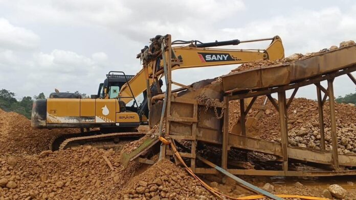 Later in the day, around 1:00 p.m., the team moved to Dompem where, once again, the miners had fled before the task force’s arrival. The operation led to the discovery of one (1) XCMG excavator and two (2) CAT machines, which were also immobilized by removing their control boards and monitors. All other illegal mining tools and materials at the site were destroyed.