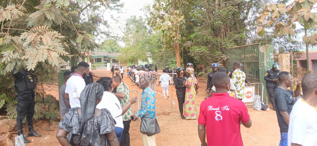 The atmosphere at the voting center is calm and peaceful. The Juaboso District Police Command has deployed adequate security personnel to ensure peace and order throughout the voting process.