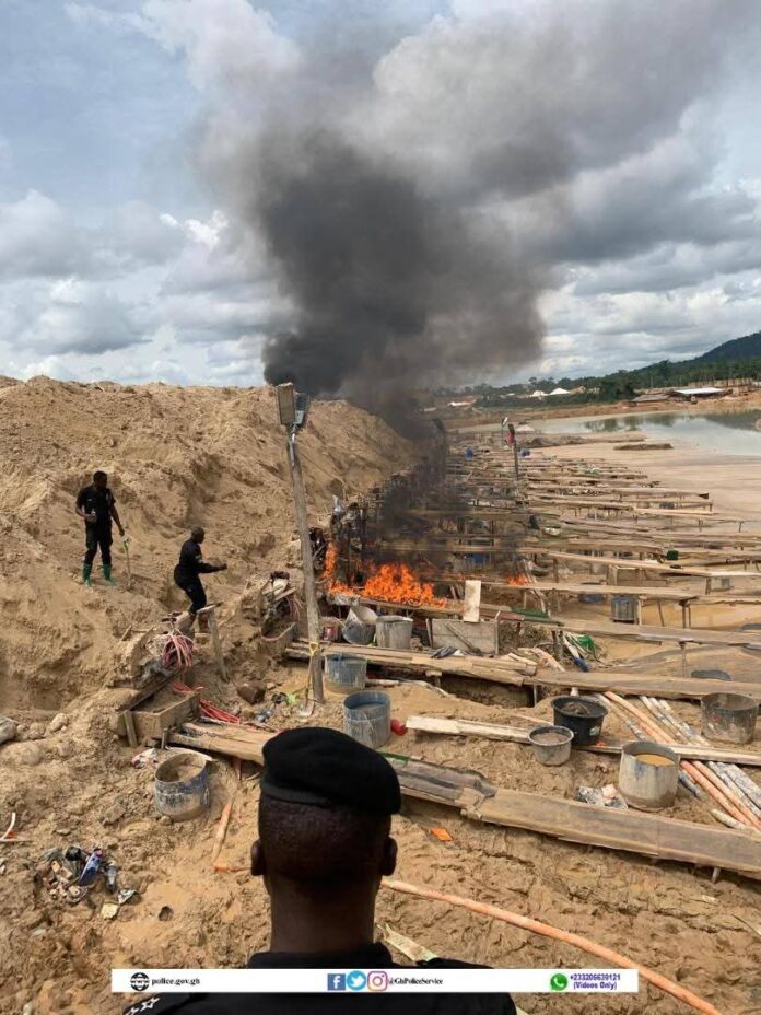The Western Central Regional Police Command as part of sustained anti-galamsey operations in the region on 19th May 2025 successfully disabled over one-hundred and twenty (120) changfang machines and arrested thirteen (13) suspects for illegal mining activities at Wassa Gyapa in the Western Region.