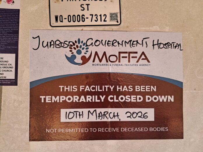 The Mortuaries and Funeral Facilities Agency has temporarily closed down the Sefwi Juaboso District government hospital mortuary for several violations.