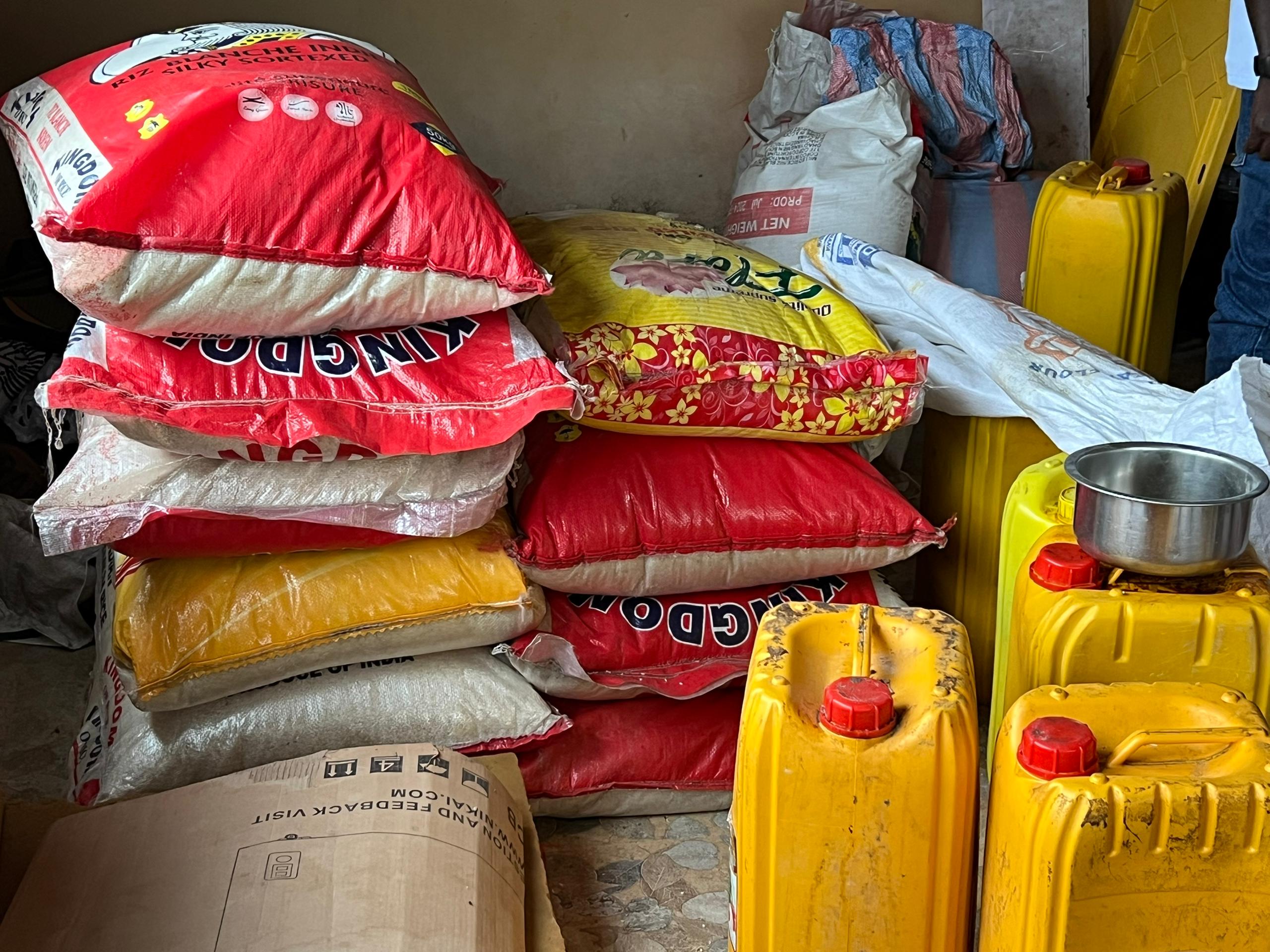 Items allegedly diverted into a private residence at Atronsu in the Bibiani Anhwiaso Bekwai Municipality of the Western North Region include 21 bags of rice, 6 gallons of cooking oil, 40 tins of tomatoes, 4 boxes of milk, 1 bag of sugar, and quantities of maize, millet, gari, and other essential foodstuffs.