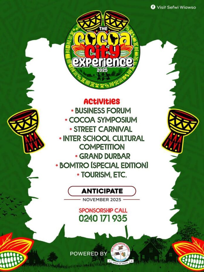 The Cocoa City Festival promises to be a month-long celebration of culture, tradition, and business opportunities. Organizers are encouraging all residents of Sefwi Wiawso, as well as those in the diaspora, to participate in the event. With its blend of culture, investment, and tourism, the festival is expected to position Sefwi Wiawso as not only a cocoa powerhouse but also a hub of cultural and economic activity.