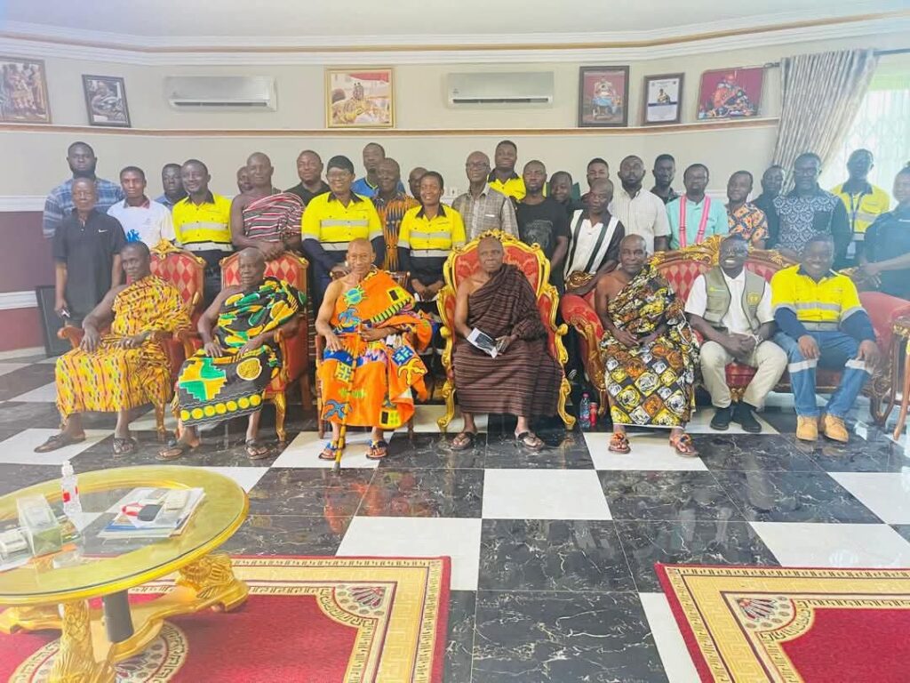 The following day, November 5, 2025, the team met with traditional leaders at the palace of the Omanhene of Kenyasi No. 1. Ing. Frank Asare Pedro further explained the mission of the Responsible Cooperative Mining initiative to the Nananom, while Mrs. Tay Senyo expressed appreciation to the traditional leaders for their commitment to ending illegal mining. Newmont representatives presented a site plan of the proposed area for the programme to facilitate the acquisition of the necessary permits from the relevant regulatory bodies.