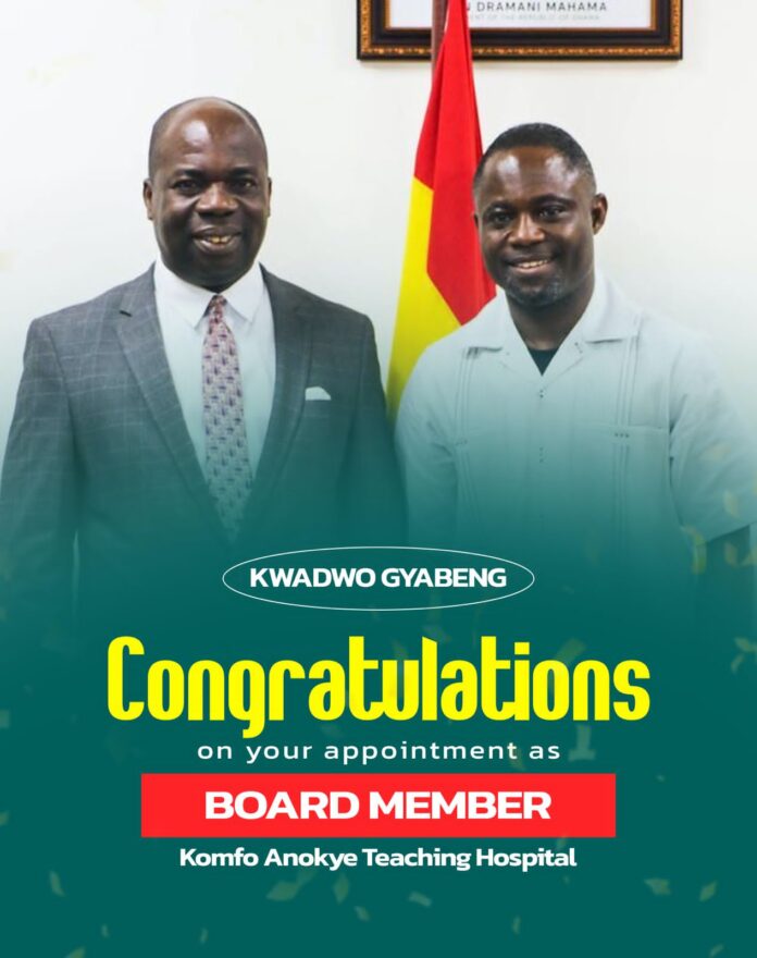 The Juaboso District has recorded another significant milestone as one of its own, Mr. Kwadwo Gyabeng, has been appointed as a board member of the Komfo Anokye Teaching Hospital in Kumasi. This development has been welcomed with excitement and pride by residents of Juaboso.Mr. Gyabeng, a respected businessman in the district, joins the board of one of Ghana’s premier health institutions, a move seen as a big win for Juaboso.