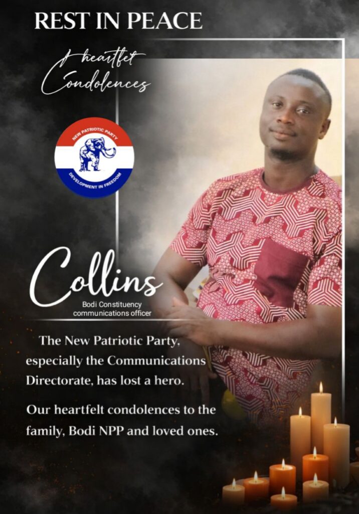 The Regional Communications Directorate of the New Patriotic Party (NPP) in the Western North Region has extended its heartfelt condolences to the family of Mr. Collins Gyabeng, the late Communications Officer for the Party in the Bodi Constituency.